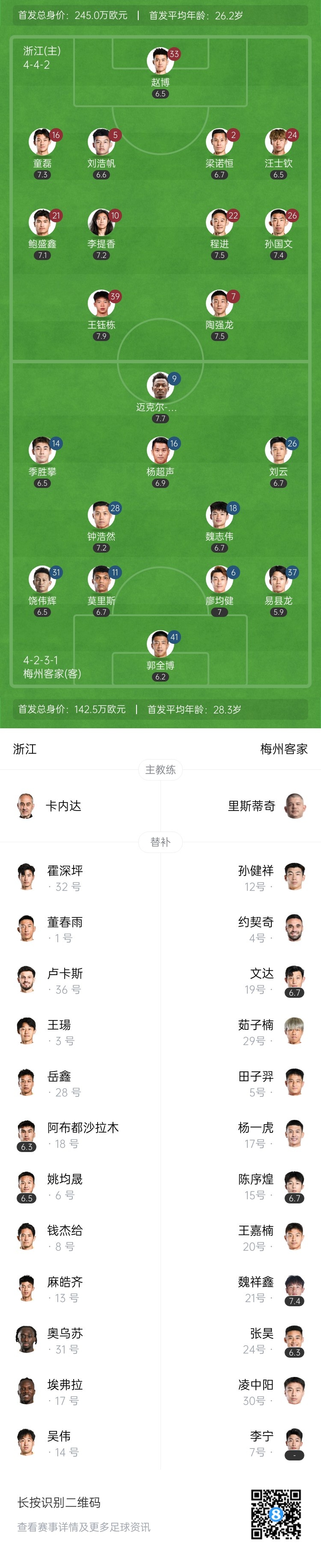 第17分钟,浙江队左路攻势,孙国文传中,王钰栋禁区内右脚停球,左脚顺势抽射!浙江队1-0领先梅州↓