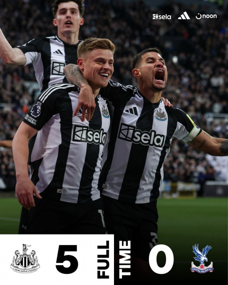 直播吧4月17日讯 北京时间2:30,英超第29轮补赛纽卡斯尔联vs水晶宫,比赛在圣詹姆斯公园球场打响!上半场,雅各布-墨菲破门;埃泽失点,格伊自摆乌龙。上半场补时阶段,哈维-巴恩斯和沙尔帮助纽卡将比分扩大到4-0!下半场,伊萨克再下一城!最终,纽卡5-0大胜水晶宫,各项赛事豪取6连胜!排名升至英超第三!