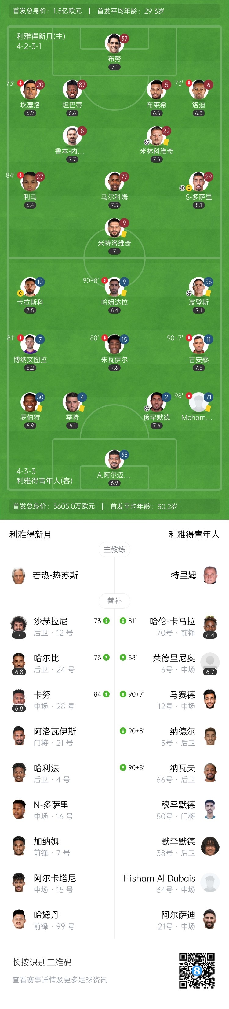 第31分钟,利雅得新月前场连续配合,多萨里突入禁区做球,米林科维奇插上低射破门!利雅得新月1-1利雅得青年人↓