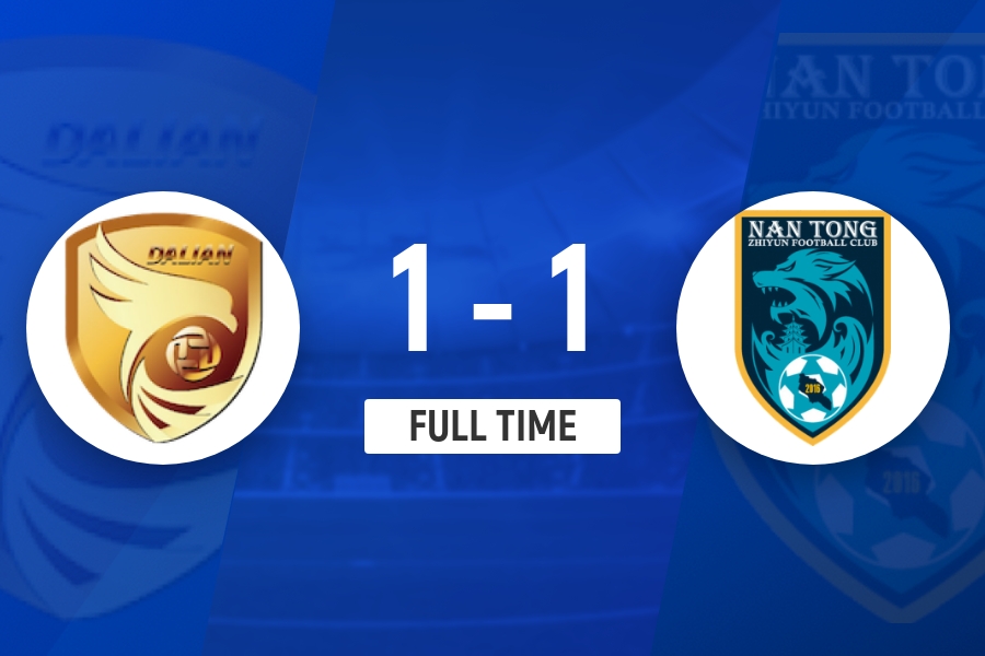 下半场补时3分钟,大连鲲城1-1南通支云。