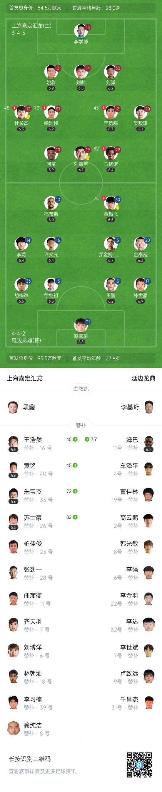 下半场补时5分钟,上海嘉定汇龙0-0延边龙鼎。