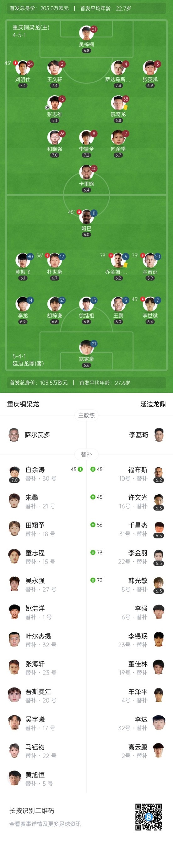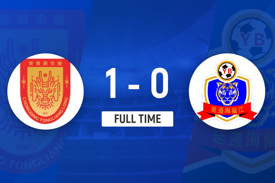 下半场补时5分钟,重庆铜梁龙1-0延边龙鼎。