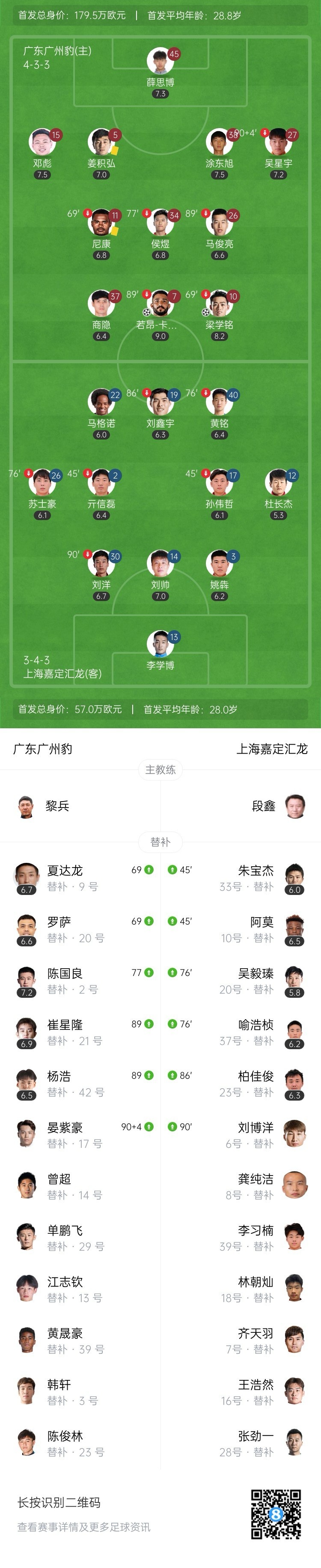 第85分钟,广州豹锁定胜局,夏达龙右路横传,若昂-卡洛斯中路低射破门完成传射,广州豹2-0领先上海嘉定汇龙。↓