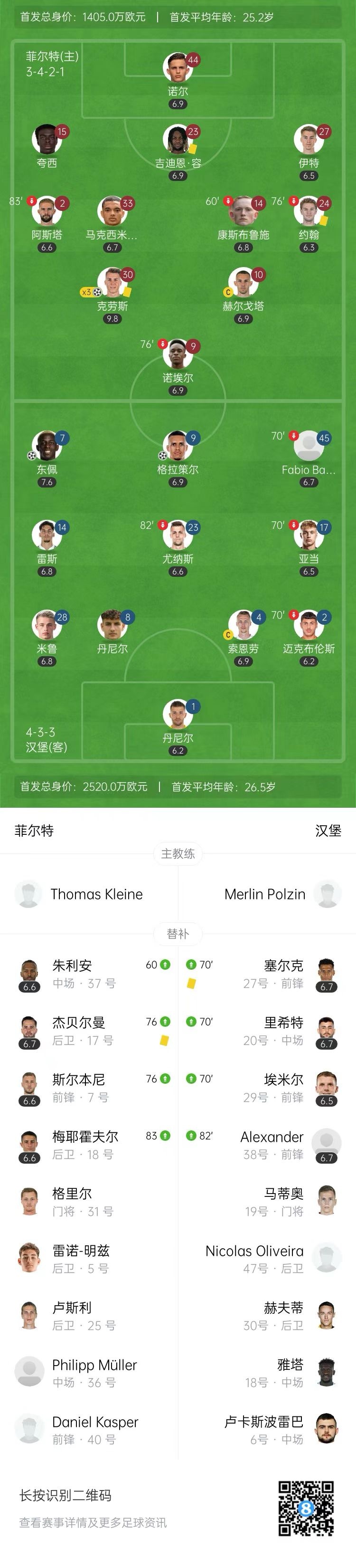 第67分钟,格拉策尔主罚将球打进,汉堡扳回一城,2-3!↓