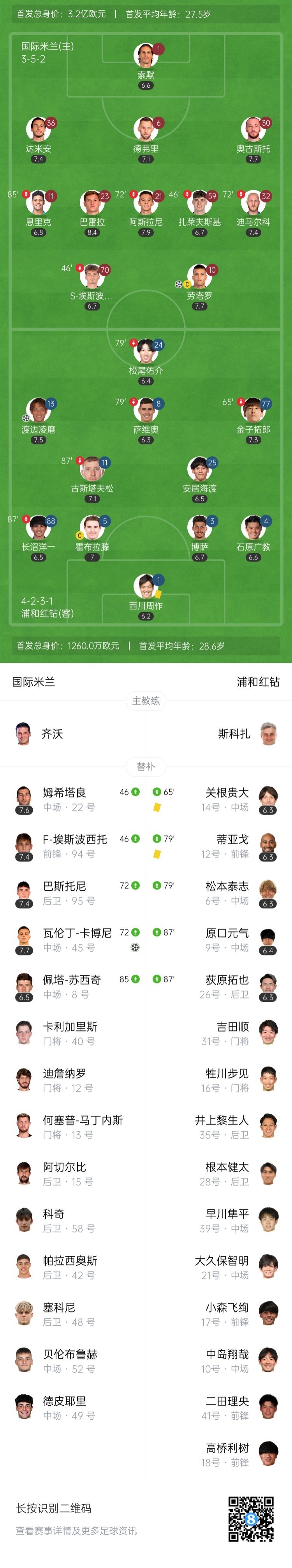 第78分钟,巴雷拉左侧角球开到前点,浦和红钻解围冒顶,劳塔罗背身侧勾破门!国米1-1扳平↓