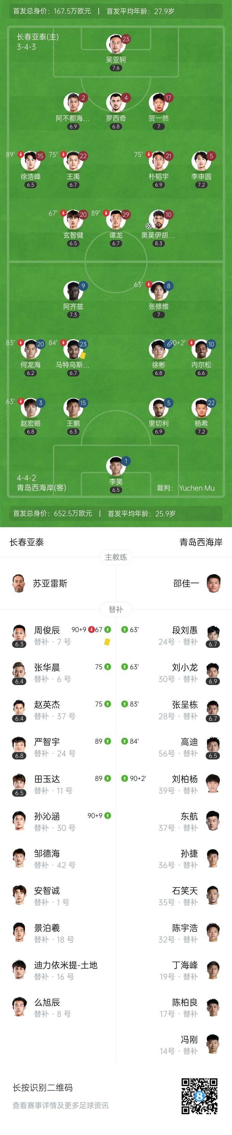 第18分钟,亚泰任意球开出,李昊出击未能扑到皮球,罗西奇第一下打门踢跐,随后徐彬铲球解围时不慎乌龙。经过VAR查看后,主裁判示意亚泰有球员越位,进球无效。↓