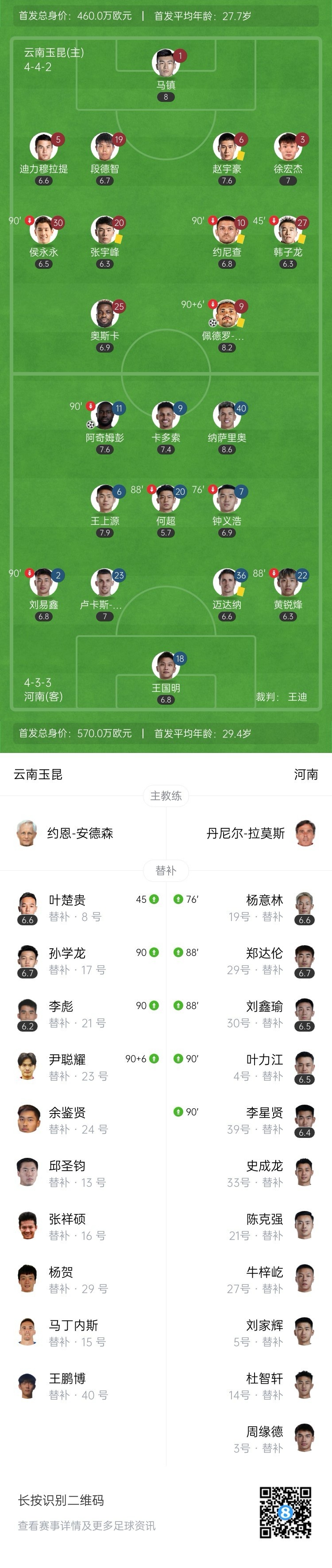 全场比赛结束,云南玉昆2-1逆转河南队。