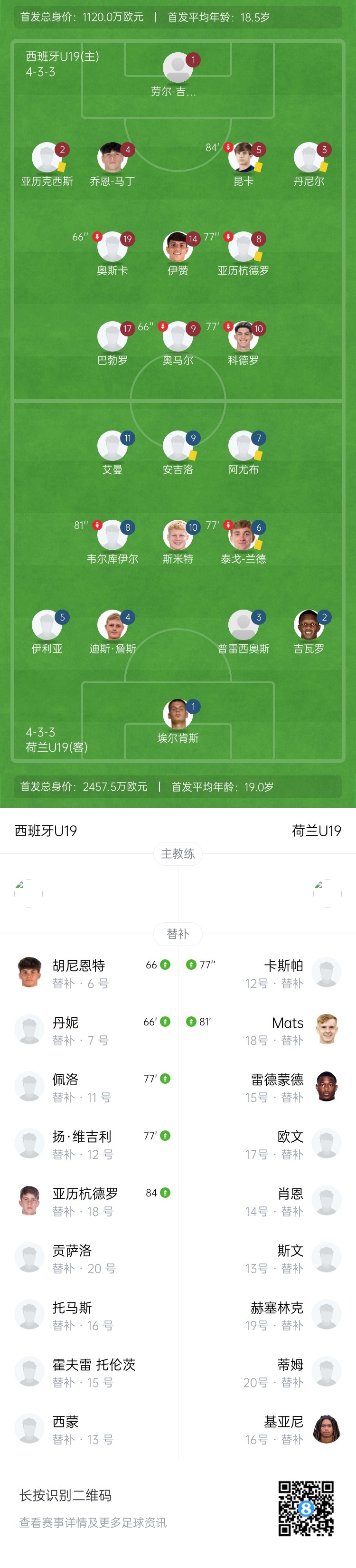 直播吧6月27日讯 欧U19决赛 西班牙U19 - 荷兰U19。上半场,阿尤布错失近距离打门良机。易边再战,西班牙两次中框,吉瓦罗造乌龙制胜,最后阶段阿尤布失单刀。最终荷兰1-0西班牙夺得冠军。