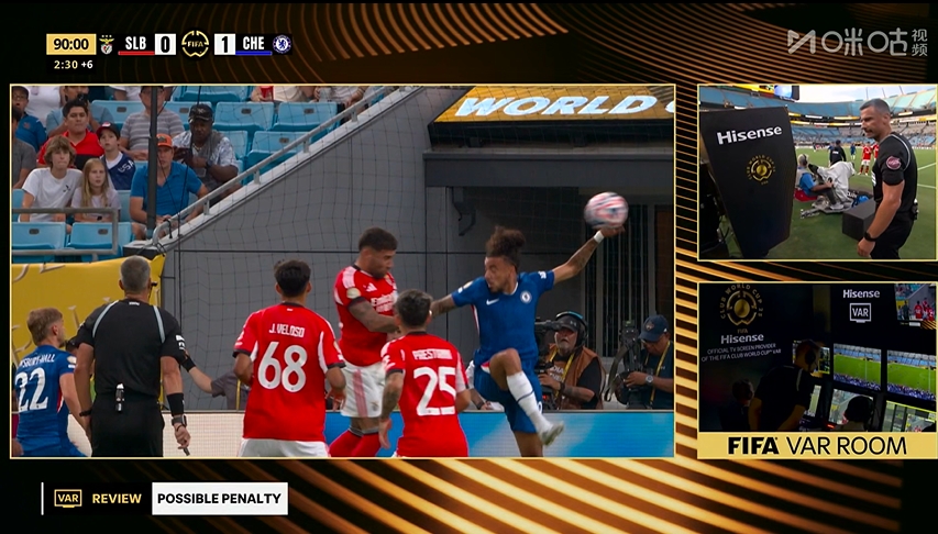 直播吧06月29日讯 世俱杯1/8决赛,本菲卡对阵切尔西,比赛在夏洛特美国银行体育场进行。上半场,库库雷利亚兜射遭席尔瓦门线解围。易边再战,里斯-詹姆斯任意球直接破门,第86分钟比赛因天气原因中断。中断近2小时后恢复,古斯托补时送点,迪马利亚点射绝平拖入加时。加时赛,本菲卡球员普雷斯蒂亚尼蹬踏染黄,两黄变一红被罚下,切尔西多打一人。加时下半场,切尔西9分钟连入3球,恩昆库、内托、霍尔破门。最终,切尔西4-1淘汰本菲卡,有惊无险晋级世俱杯8强,全场比赛耗时近5小时!世俱杯1/4决赛,切尔西将战帕尔梅拉斯。
