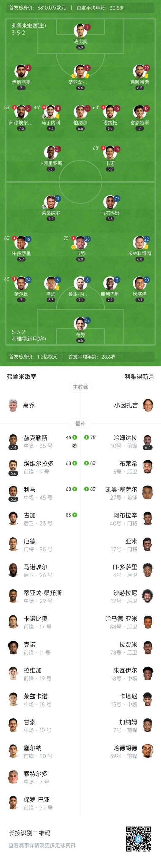 第70分钟,弗鲁米嫩塞再下一城!赫克勒斯中路远射被挡,第二点哈维尔头球摆渡到禁区赫克勒斯跟上抽射破门,弗鲁米嫩塞2-1利雅得新月。↓