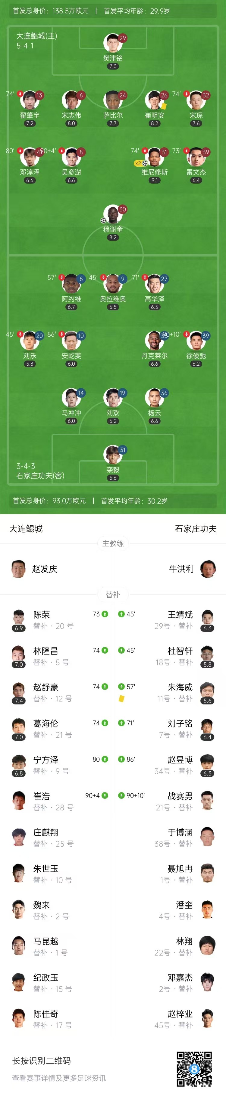 第10分钟,大连左路传中,维尼修斯后点头球回做,穆谢奎跟进爆射打破僵局,大连鲲城1-0石家庄功夫。↓