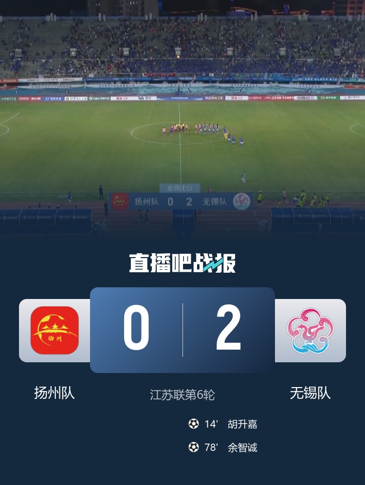 下半场补时7分钟,扬州0-2无锡。