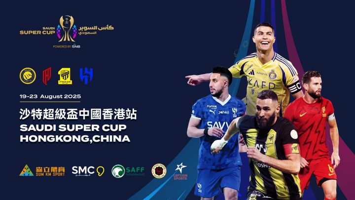 中国香港,2025年7月9日 ─ 由森立体育主办、获中国香港足球总会及沙特阿拉伯足球协会支持的“2025/26 沙特超级杯”今日举行媒体发布会,宣布赛事将于今年8月19日至23日在中国香港大球场隆重举行。这项享誉国际的足球锦标赛首次在东亚地区举行,今年选择落户中国香港,势必吸引足球迷的广泛关注。