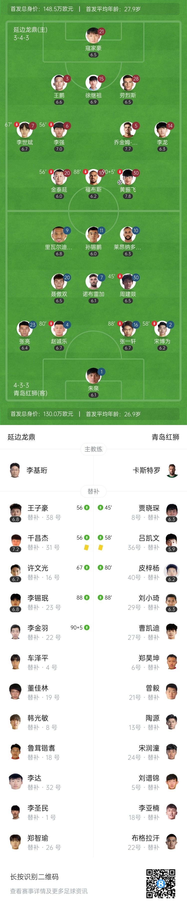 直播吧7月19日讯 北京时间18:00,中甲第17轮延边龙鼎vs青岛红狮。上半场,福布斯头球中框;黄振飞头球破门帮助延边龙鼎取得领先。下半场,双方均无建树。最终,延边龙鼎1-0战胜青岛红狮,先赛升至第3;青岛红狮排名第15,仍居降级区。