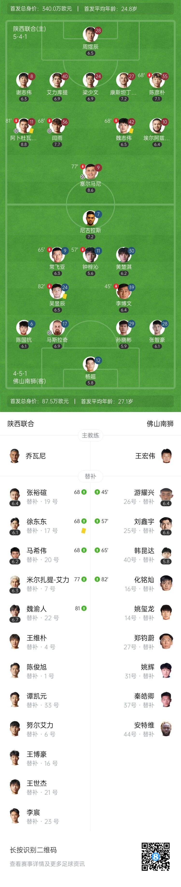 直播吧7月26日讯 北京时间7月26日晚上19:00,中甲第18轮,陕西联合坐镇渭南体育中心体育场迎战佛山南狮。上半场,塞尔马尼首秀助攻,闫雨破门,阿卜杜瓦哈普进球。下半场,尼古拉斯头槌扳回一球,塞尔马尼远射中的。全场结束,陕西联合3-1佛山南狮。本场过后,陕西联合积22分升至第9,佛山南狮积17分排名第14位。