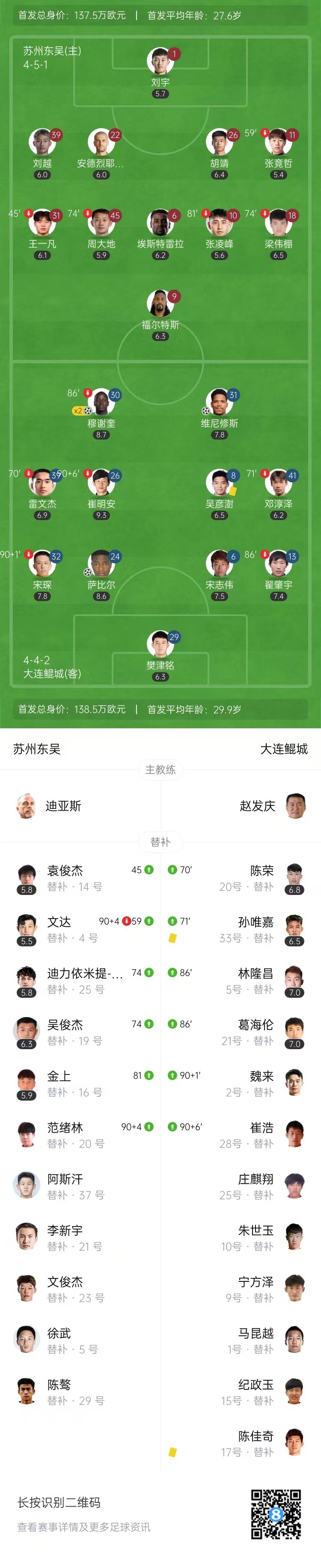 全场比赛结束,苏州东吴0-4大连鲲城。