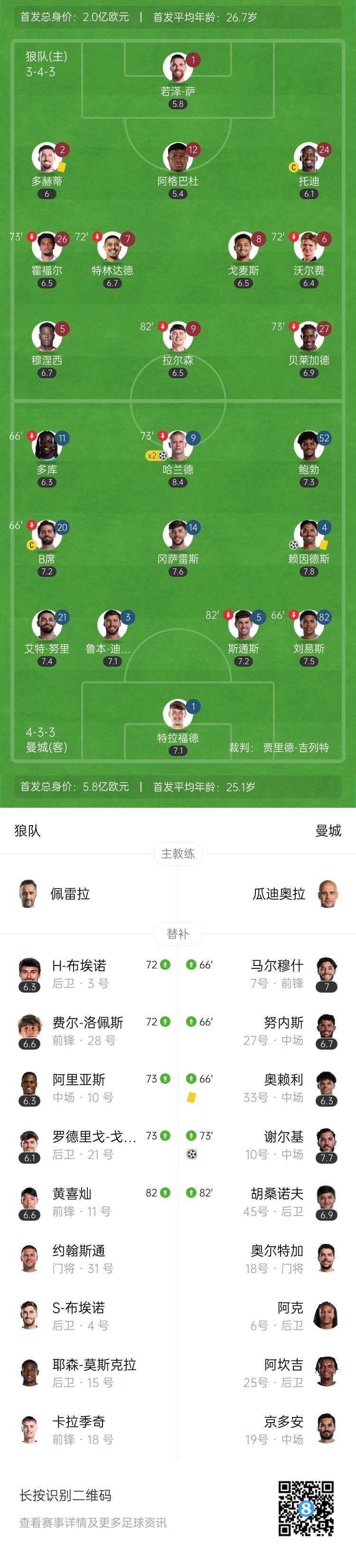 直播吧8月17日讯 北京时间8月17日凌晨0时30分,英超第1轮,曼城做客莫利诺克斯球场对阵狼队。上半场,穆涅西破门越位在先,随后哈兰德首开纪录,赖因德斯扩大领先优势。曼城半场2-0领先狼队。下半场,哈兰德再下一城,替补登场的谢尔基打进一球。最终曼城4-0大胜狼队,暂时登上榜首。