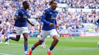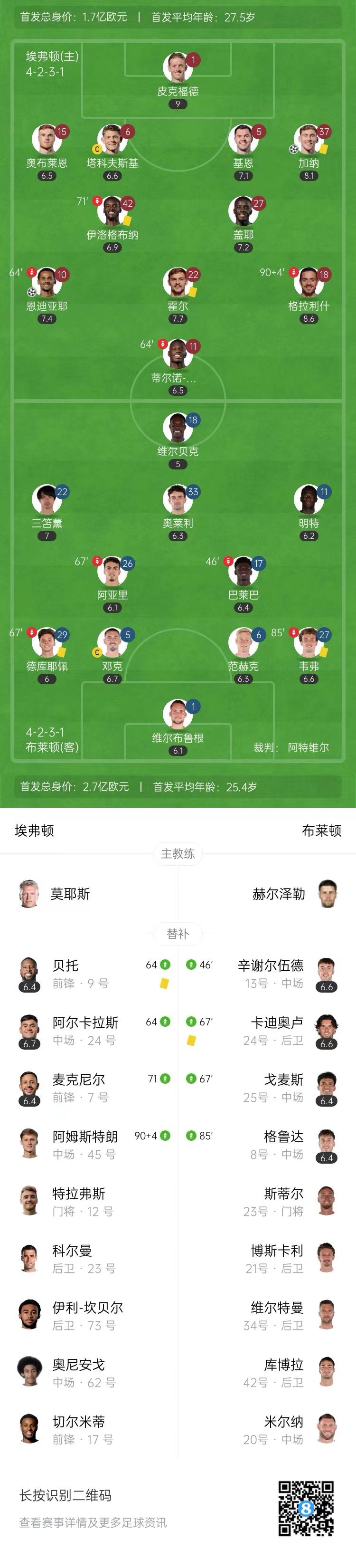 直播吧8月24日讯 北京时间8月24日21:00,英超第2轮,埃弗顿坐镇主场希尔-迪金森体育场迎战布莱顿。上半场,三笘薰反击抽射击中横梁,维尔贝克失空门,格拉利什助攻恩迪亚耶破门,范赫克远射中柱。下半场,格拉利什助攻加纳远射破门,霍尔手球送点,皮克福德扑点。全场比赛结束,埃弗顿主场2-0击败布莱顿。