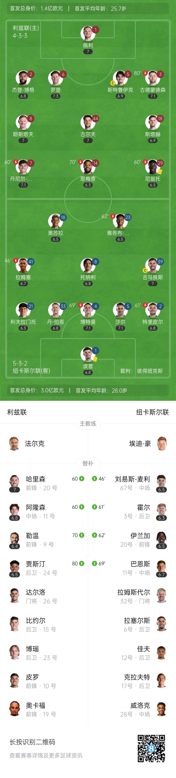 第54分钟,雅各布-墨菲禁区前沿横向内切,晃开防守起脚远射,门将将球扑出底线。↓