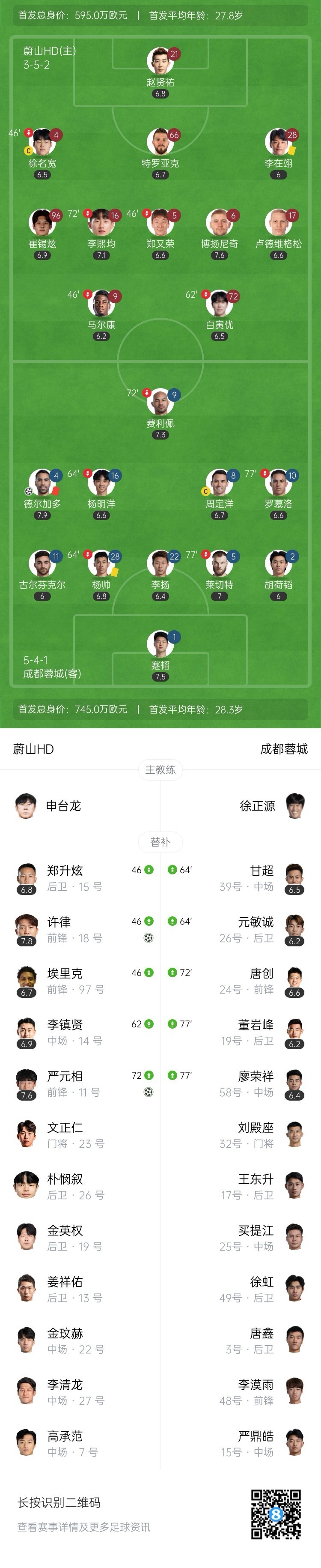 第95分钟,蔚山HD右路传中,许律后点抽射绝杀,蔚山HD2-1反超蓉城。↓