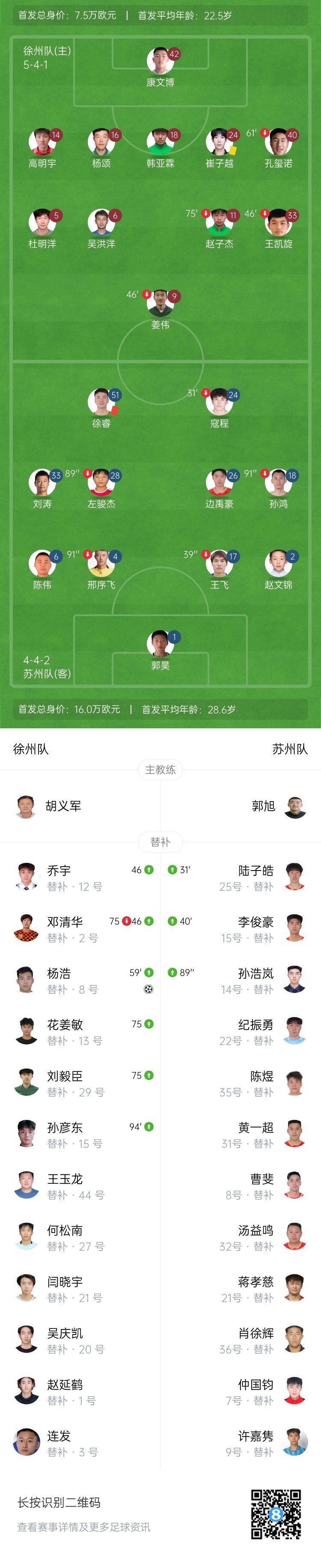 第88分钟,徐州的角球开出,杨浩面对多人防守抢点头球破门得分,徐州1-0苏州!↓