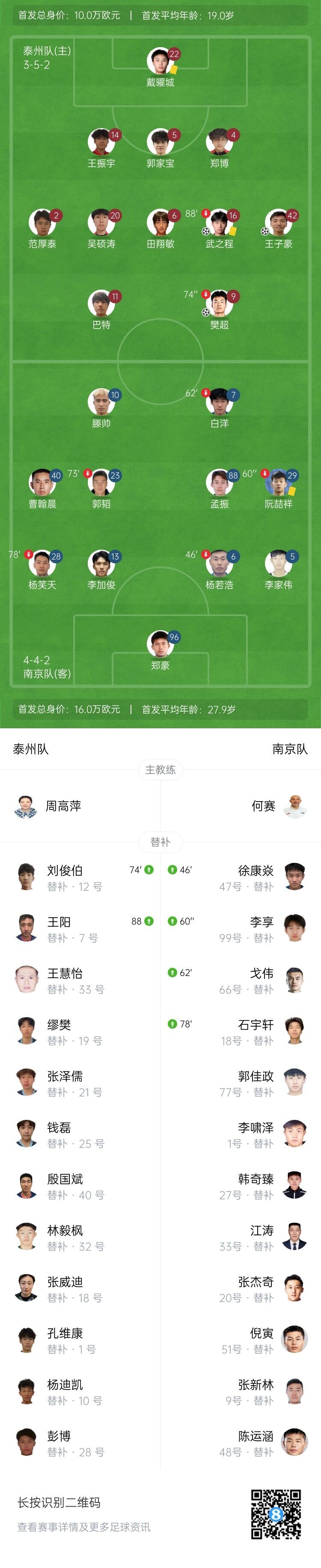 直播吧9月20日讯 北京时间9月20日晚上19:35,苏超第12轮,泰州队坐镇主场迎战南京队。上半场,武之程乱战破局,樊超推杆命中。下半场,王子豪锁定胜局。全场结束,泰州队3-0南京队。本场过后,泰州积18分排名第五,南京积21分降至第3。