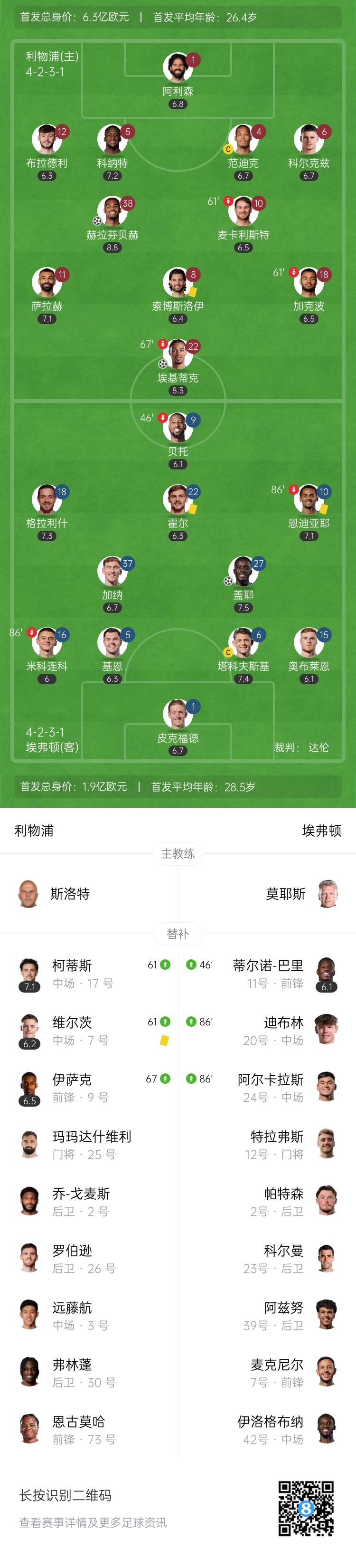 【双方首发以及换人信息】