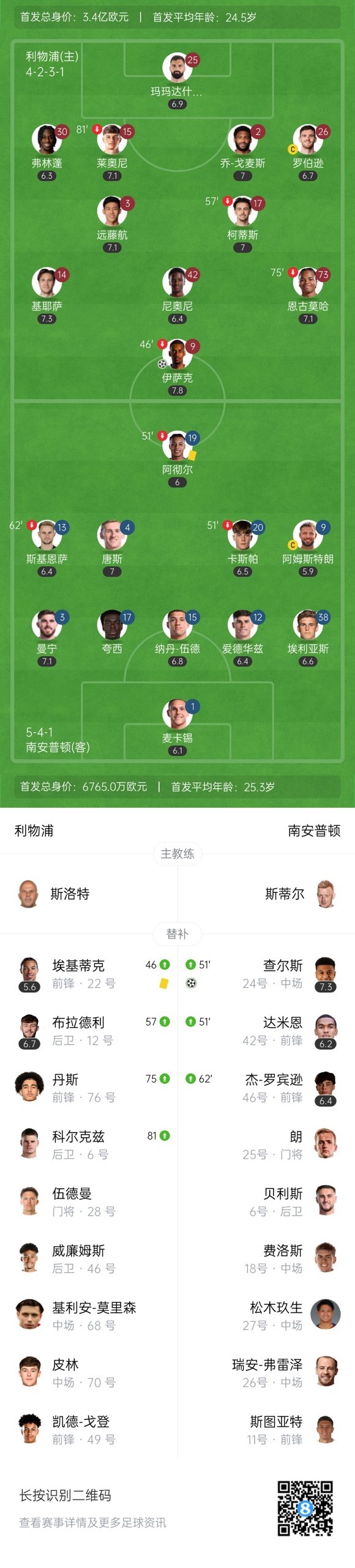 双方首发以及换人信息: