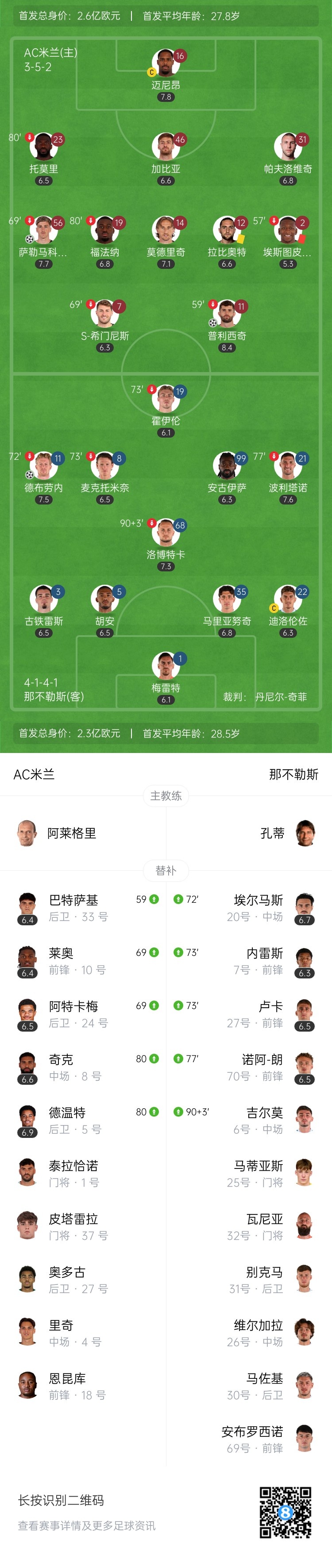 直播吧9月29日讯 北京时间2:45,意甲第5轮AC米兰vs那不勒斯,比赛在圣西罗球场打响!上半场,普利西奇精彩助攻,萨勒马科尔斯闪击破门!随后普利西奇再进一球完成传射!下半场,埃斯图皮尼安吃到红点套餐!德布劳内点射扳回一球!最终,AC米兰2-1击败那不勒斯,登顶意甲积分榜!