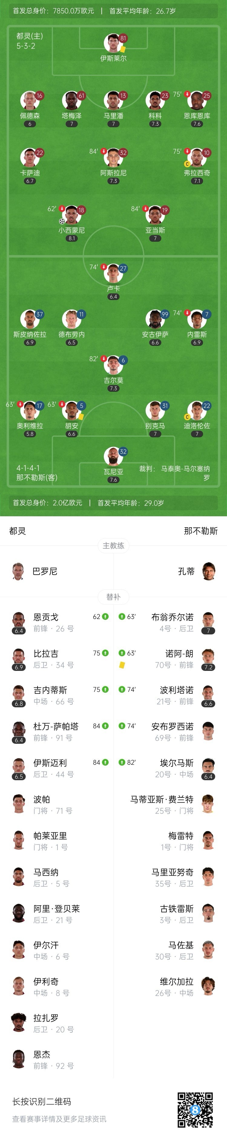 直播吧10月19日讯 北京时间10月19日凌晨0时,意甲第7轮,那不勒斯做客都灵奥林匹克球场对阵都灵。上半场,小西蒙尼首开纪录。那不勒斯半场0-1落后都灵。下半场,诺阿-朗补时绝平球被吹。最终那不勒斯0-1不敌都灵,最近3轮联赛遭到2场败绩。