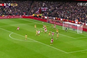 第68分钟,阿森纳定位球攻势,加布里埃尔头球稍稍偏出,自己还撞到立柱上。↓