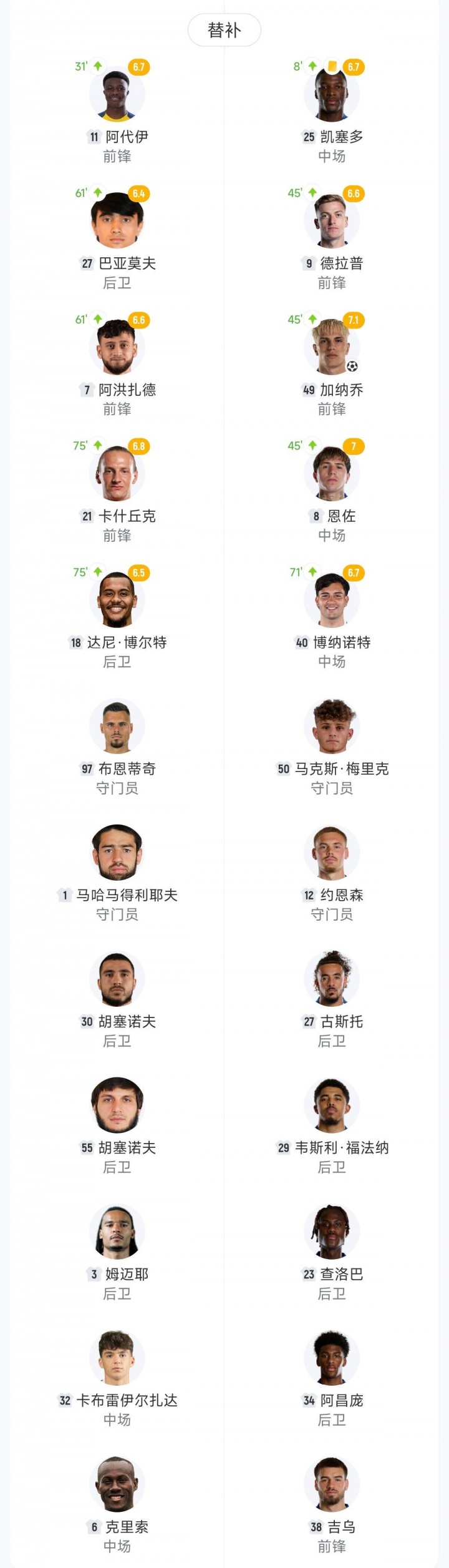 【双方首发以及换人信息】