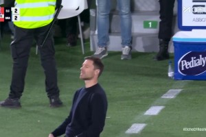 第87分钟,贝林厄姆禁区内起脚打门,球被门将扑出,随后姆巴佩在底线前将球回敲,贝林厄姆迅速包抄推射破门,2-2!↓
