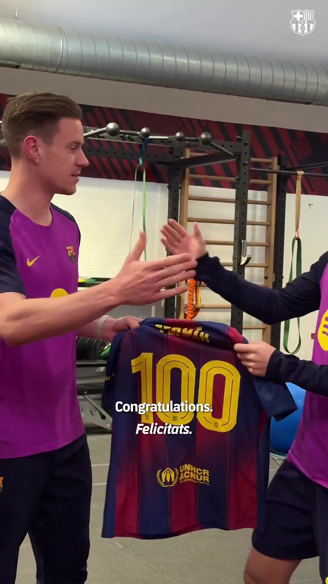 直播吧11月27日讯 巴萨官推晒视频,费尔明获得了俱乐部百场里程碑球衣,并在队友的簇拥下展示了球衣。