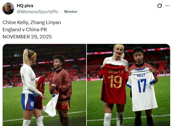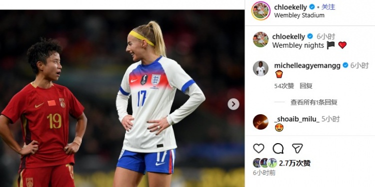 场外是朋友!张琳艳赛后和英格兰女足球员凯莉现场交换球衣