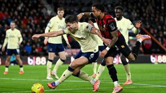 半场结束,伯恩茅斯0-0埃弗顿。