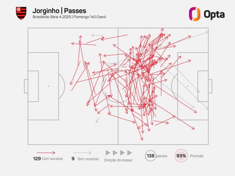 据Opta统计,若日尼奥本场比赛成功传球129次,本赛季巴甲单场成功传球第二多,仅次于若日尼奥自己对阵维多利亚一役的132次成功传球。
