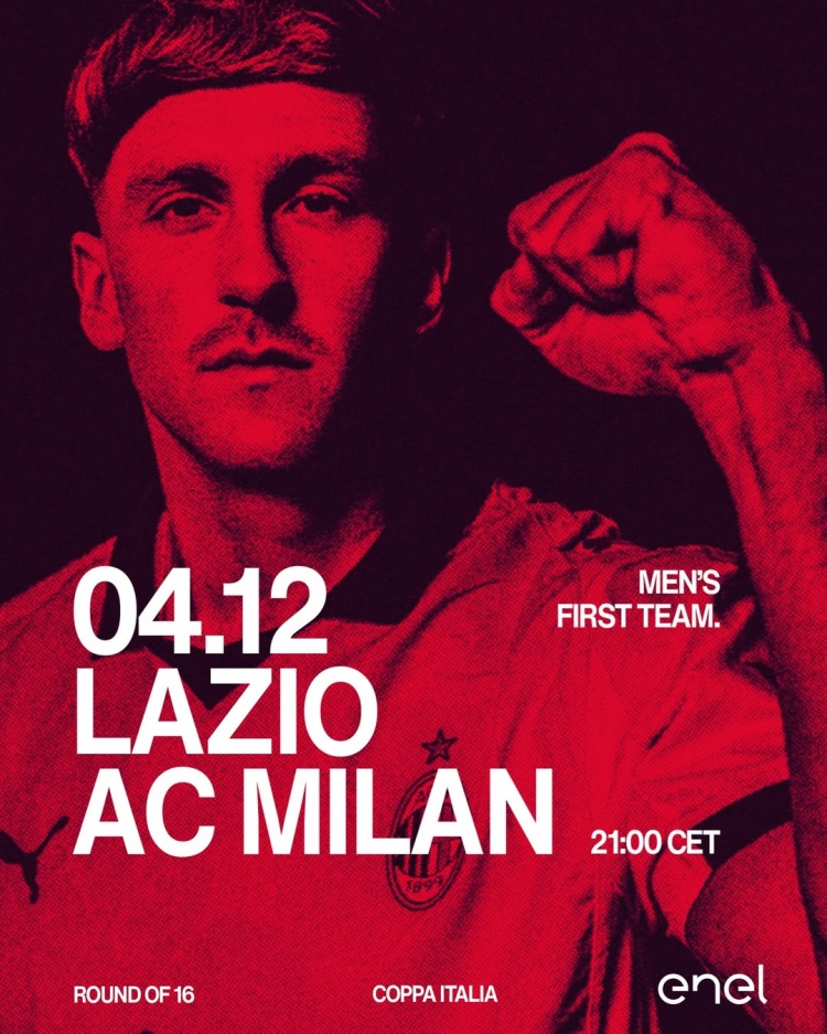 AC米兰发布意杯客战拉齐奥海报:萨勒马科尔斯单人出镜