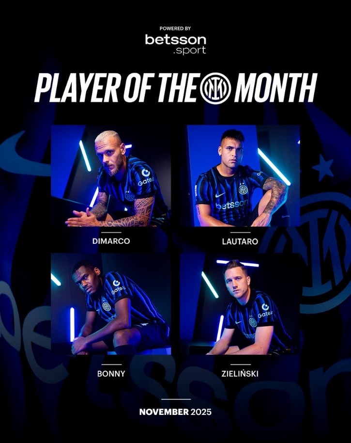 >国米官方11月最佳球员候选:劳塔罗、迪马尔科、博尼、泽林斯基