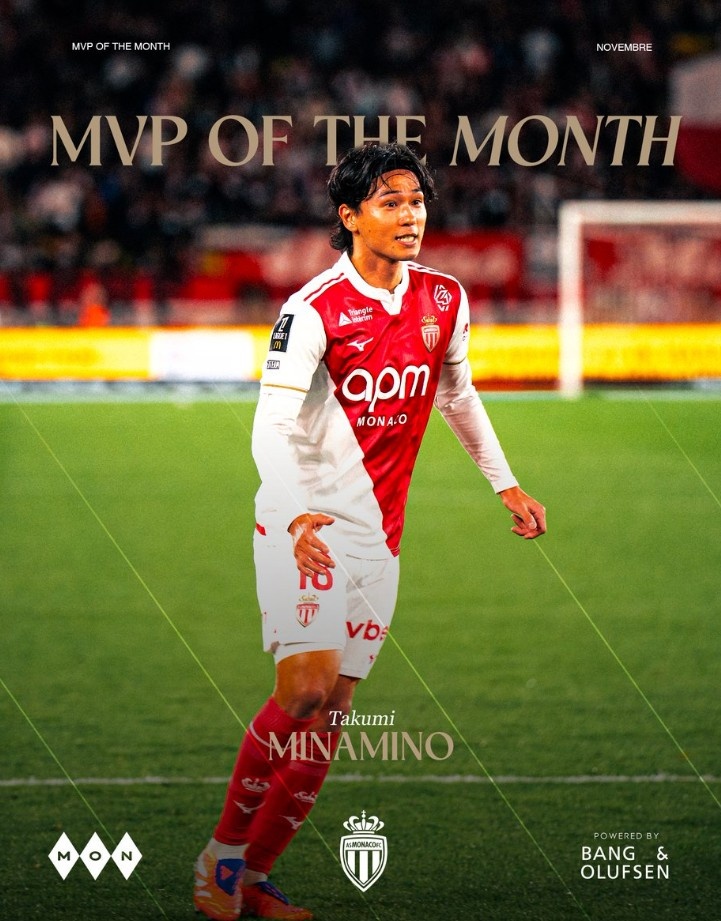 直播吧12月4日讯 摩纳哥官方消息,日本国脚南野拓实当选队内11月最佳球员。