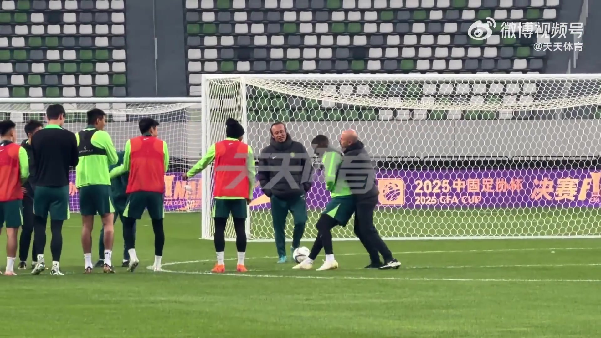 直播吧12月5日讯 国安今天进行足协杯决赛踩场训练,《天天体育》发布一段球队训练前的视频。