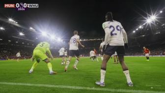 第58分钟,阿玛德右路突入禁区,随后回做给卡塞米罗,卡塞米罗跟上一脚爆射被防守球员挡了一下,禁区内达洛特停球转身射门打进,曼联1-0西汉姆联。↓