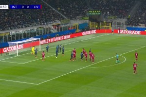 第40分钟,国米前场任意球机会,巴雷拉主罚选择直接攻门,稍稍偏出近门柱。↓