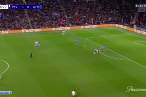 第10分钟,埃因霍温左路后场送出精妙直塞,德里欧得球推进禁区内无私横传,蒂尔跟进轻松推射入网,马竞0-1落后↓