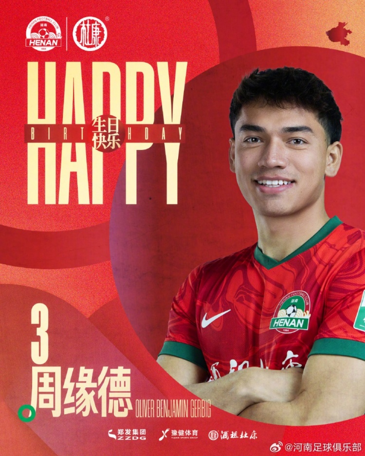 今天是河南俱乐部球员周缘德的生日,让我们一同祝福他生日快乐!