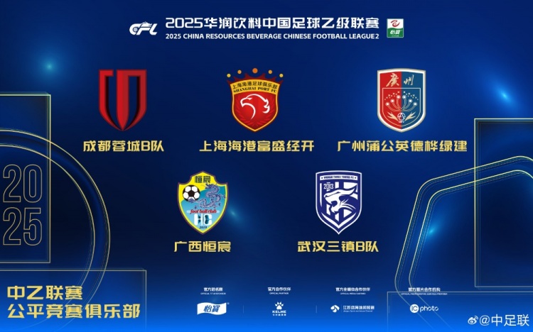 直播吧12月12日讯 2025赛季中国足球职业联赛颁奖仪式举行,中乙联赛公平竞赛俱乐部为:成都蓉城B队、上海海港富盛经开、广州蒲公英德桦绿建、广西恒宸、武汉三镇B队。