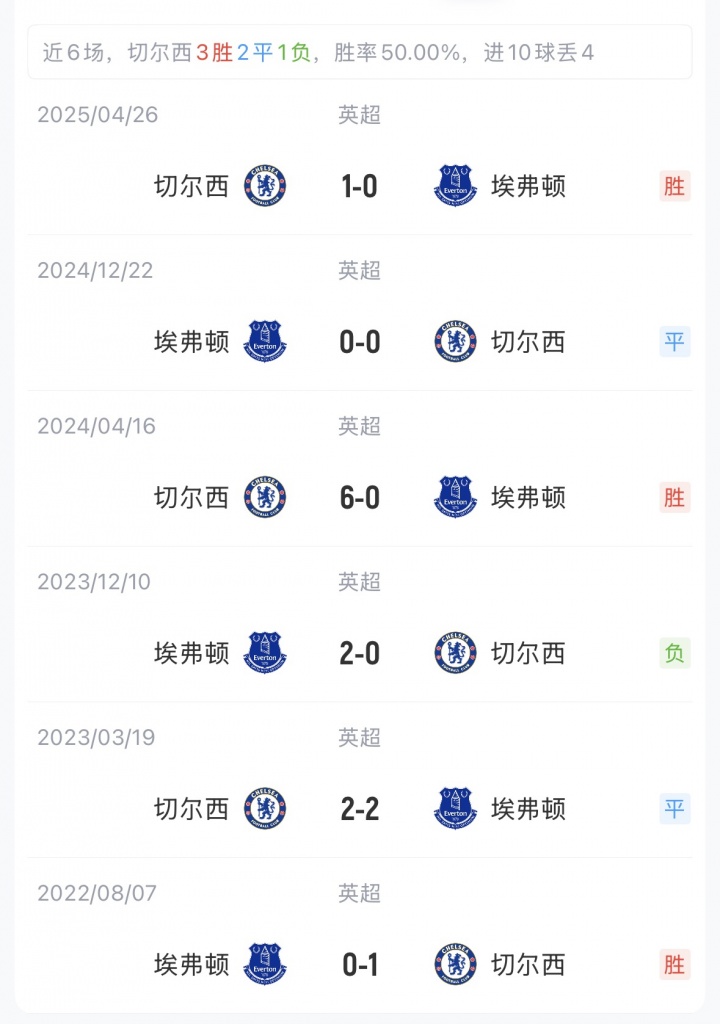 英超15轮比赛过后,切尔西7胜4平4负积25分排在第5,埃弗顿7胜3平5负积24分排在第7。