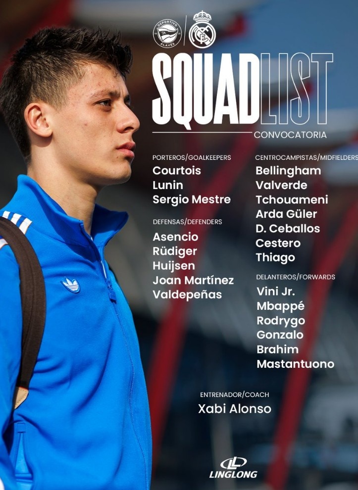 直播吧12月13日讯 皇马将在本轮西甲迎战阿拉维斯,球队官方也公布了本场比赛大名单,姆巴佩在列,赫伊森伤愈回归,卡雷拉斯、弗兰·加西亚停赛。具体如下:
