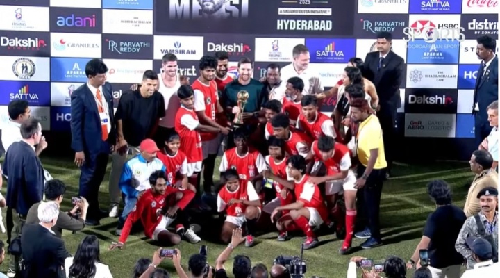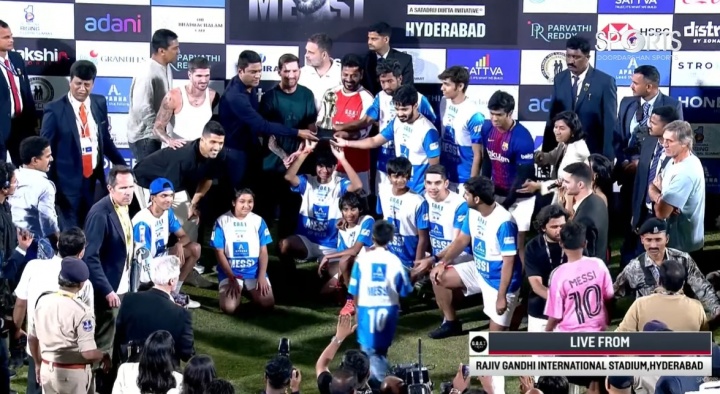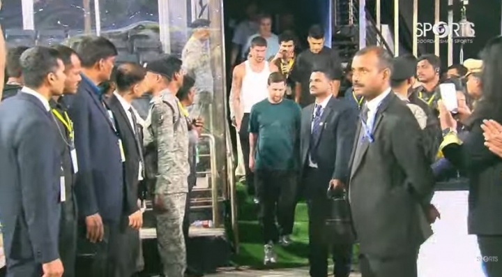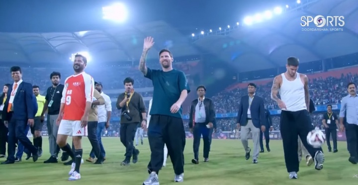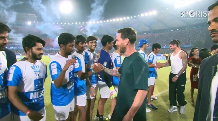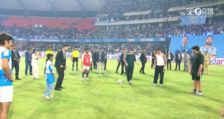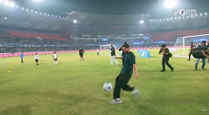 直播吧12月13日讯 今晚梅西印度行开启了第二站海得拉巴站,梅西在体育场进行了多项活动。