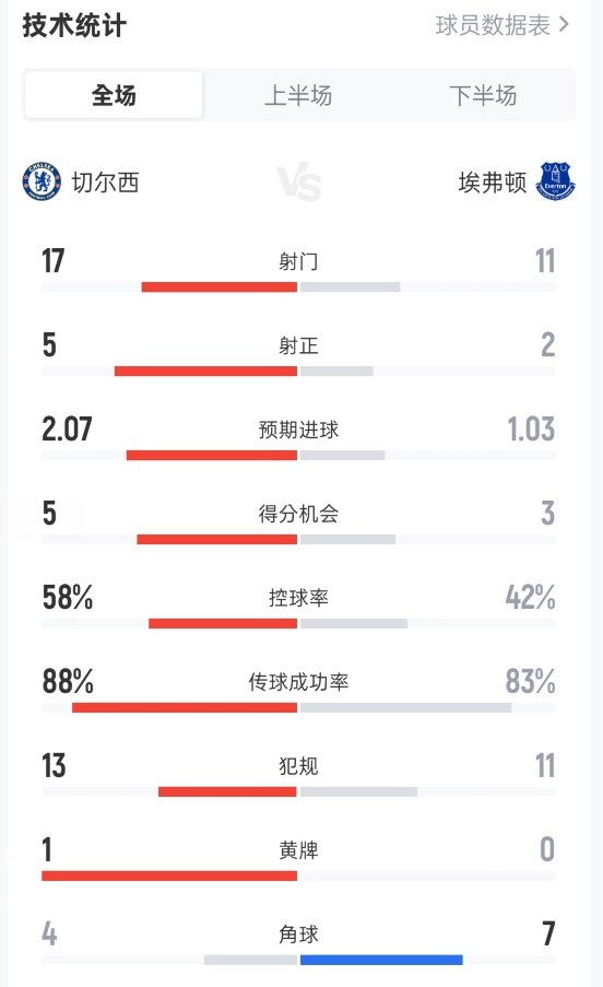 直播吧12月14日讯 2025-26赛季英超第16轮,切尔西2-0埃弗顿。